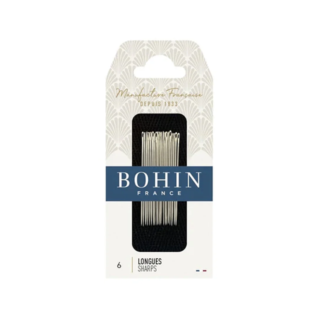 Aiguille à coudre longue – SHARPS BOHIN N°6 glisse très bien – pour tissus moyens et lourds comme le velours, lainage, brocard ou jean denim. Ces aiguilles sont fabriquées en France et sont faits d’acier nickelé, ce qui leur permet de glisser facilement. Leur bout est parfaitement pointu ce qui leur permet de coudre tous types de tissus.