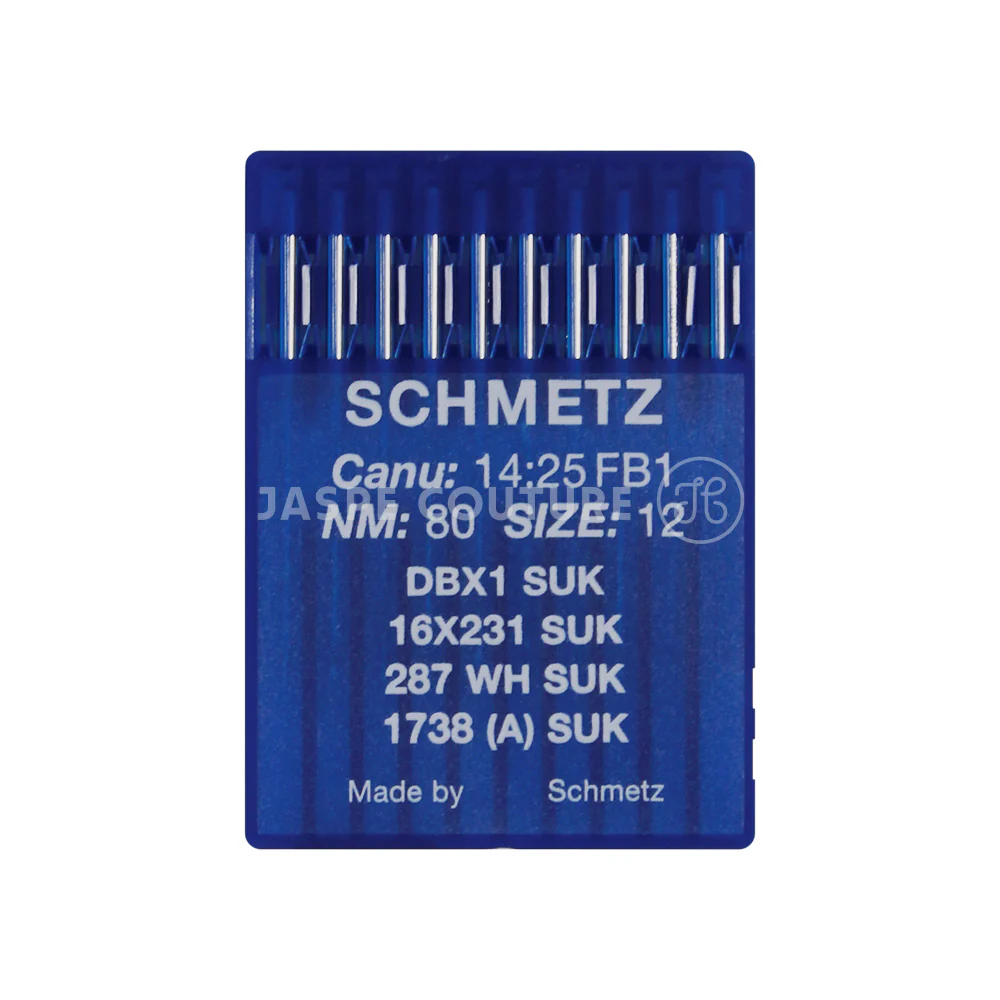 Aiguilles industrielles Schmetz 16×231 SUK NM80 sont de très bonne qualité. Solides et durables, elles ne se cassent pas. Appelées aussi aiguilles talon rond elles sont compatibles à de nombreuses machines à coudre industrielles de marque comme Pfaff, Jack etc