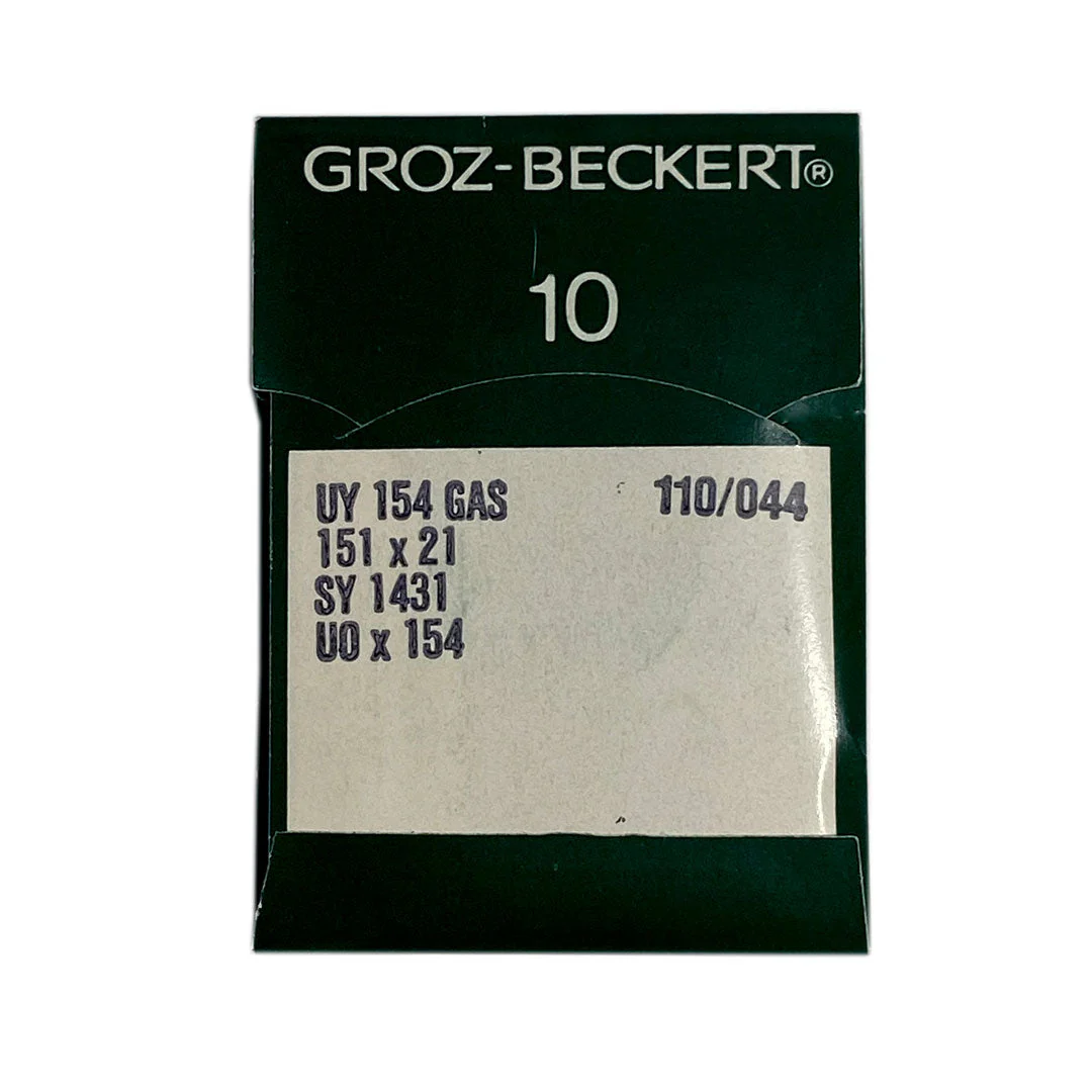Plaquette de 10 aiguilles industrielles Groz-Beckert UY 154 GAS. Qualité supérieure. Solides et durables, elles ne se cassent pas. Ces aiguilles sont recourbées et peuvent être utilisées sur les machines de marque comme Union Spécial 39600CB