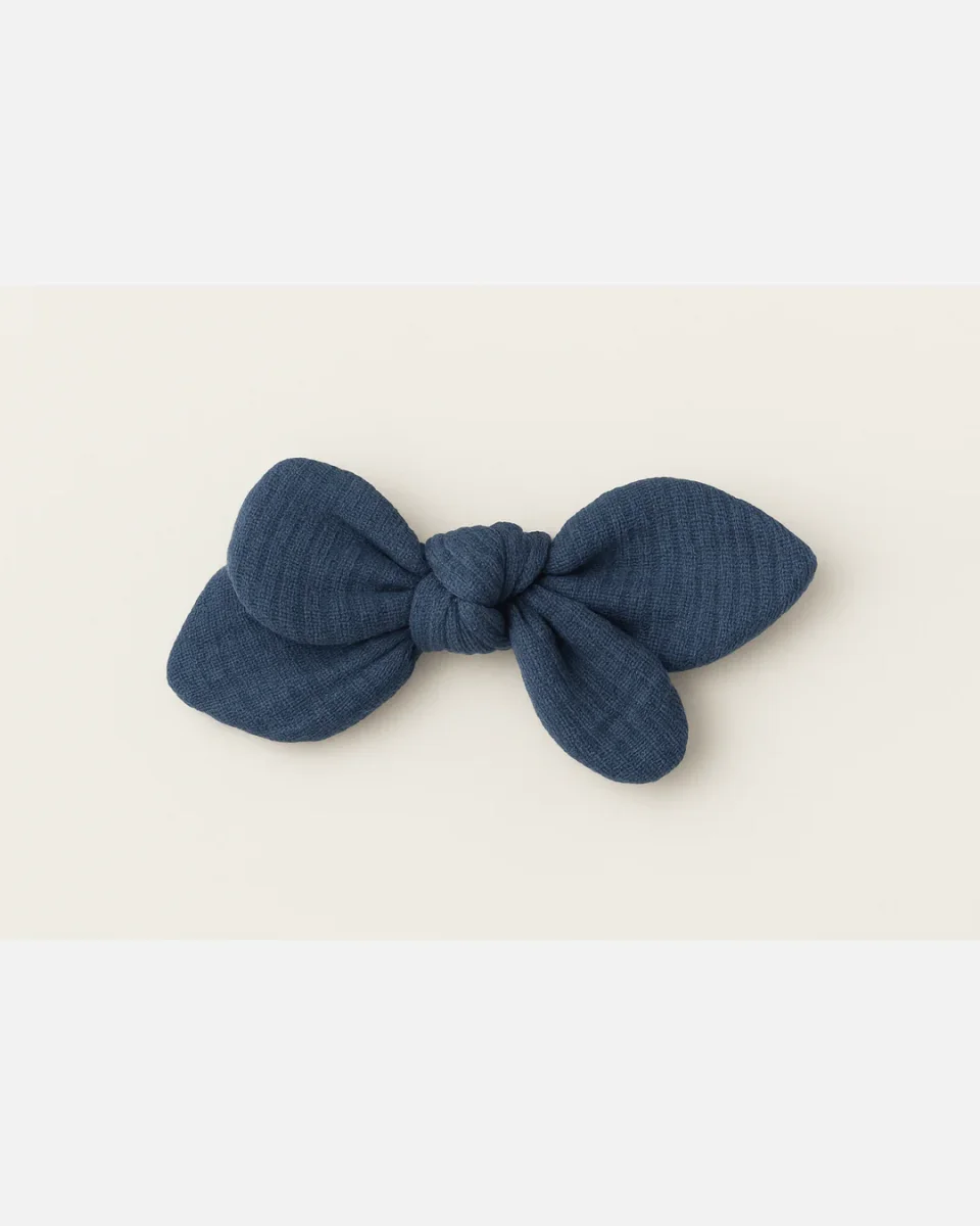 Barrette nœud gaze de coton bleu pour cheveux accessoire vêtement enfant