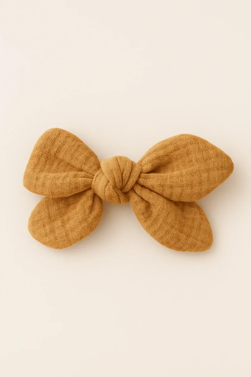 Barrette nœud gaze de coton camel pour cheveux accessoire vêtement enfant