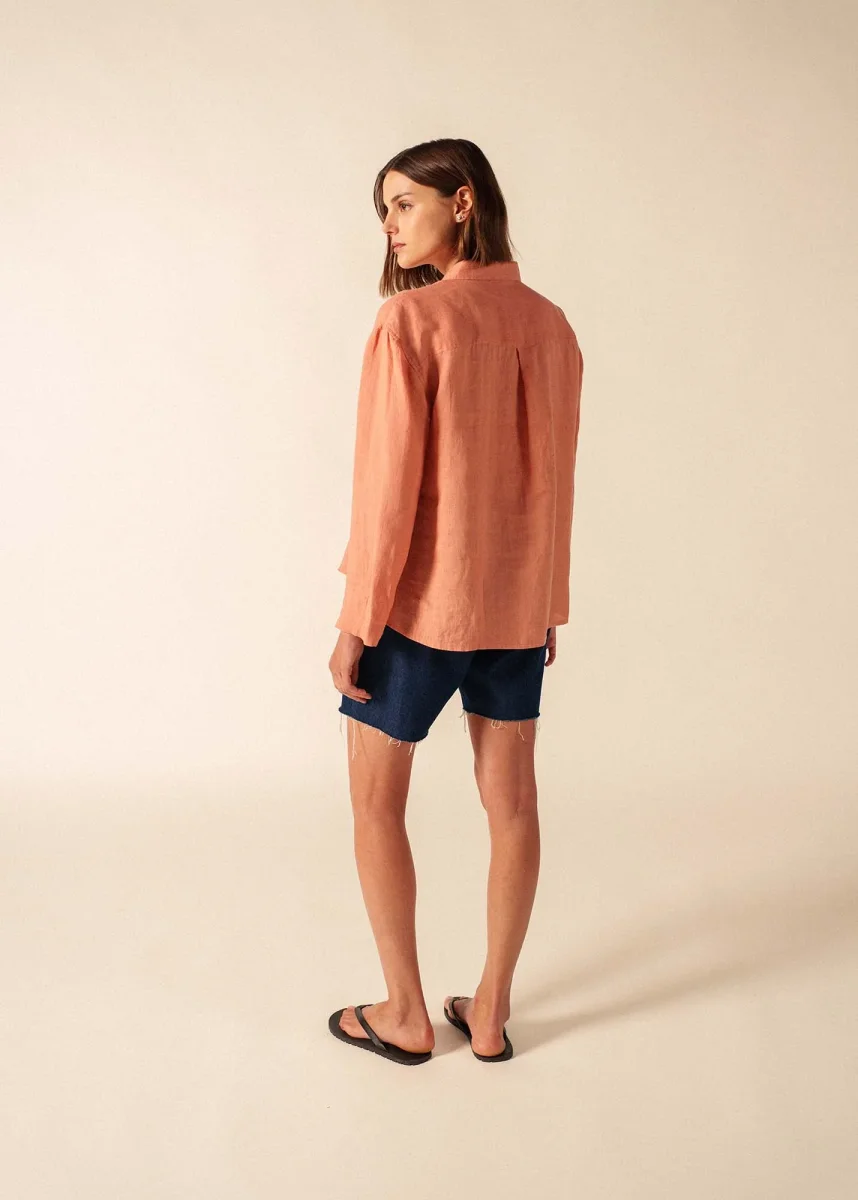 Fabriquée en gaze de lin, plus léger que le lin traditionnel, cette chemise est idéale pour la belle saison. On aime ses manches 3/4, ses poches plaquées sur la poitrine, ses fentes sur les côtés ainsi que son tissage aéré.