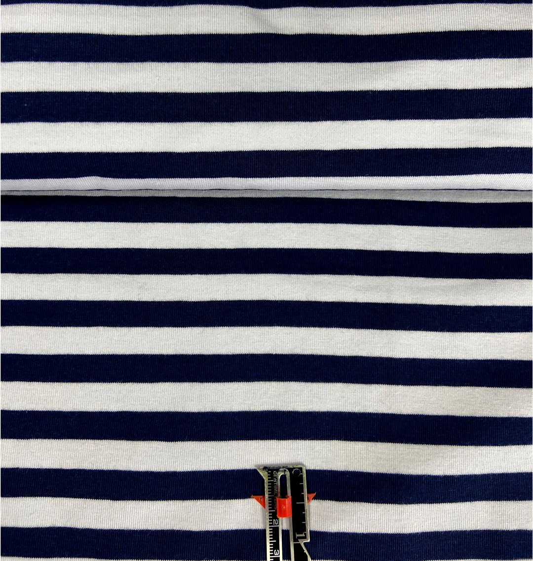 Tissu coton jersey à rayures, tricot marine/blanc, 50cm