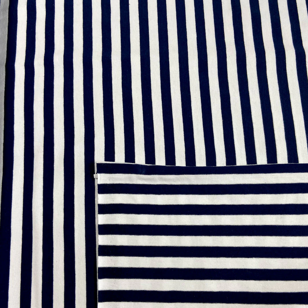 Coupon de Tissu coton jersey à rayures, tricot marine/blanc, 40cmx150cm