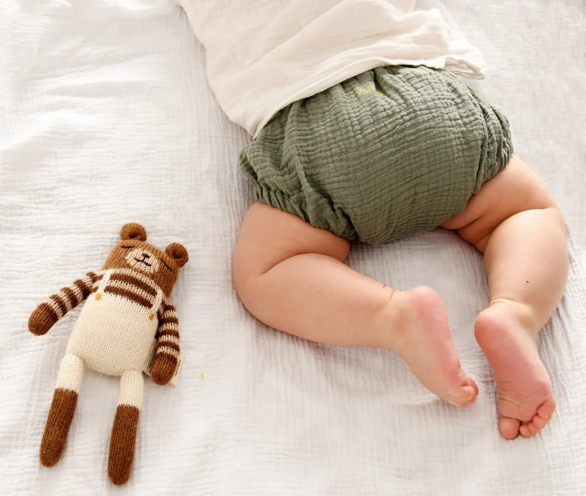 Culotte bloomer bébé personnalisable en gaze de coton vert