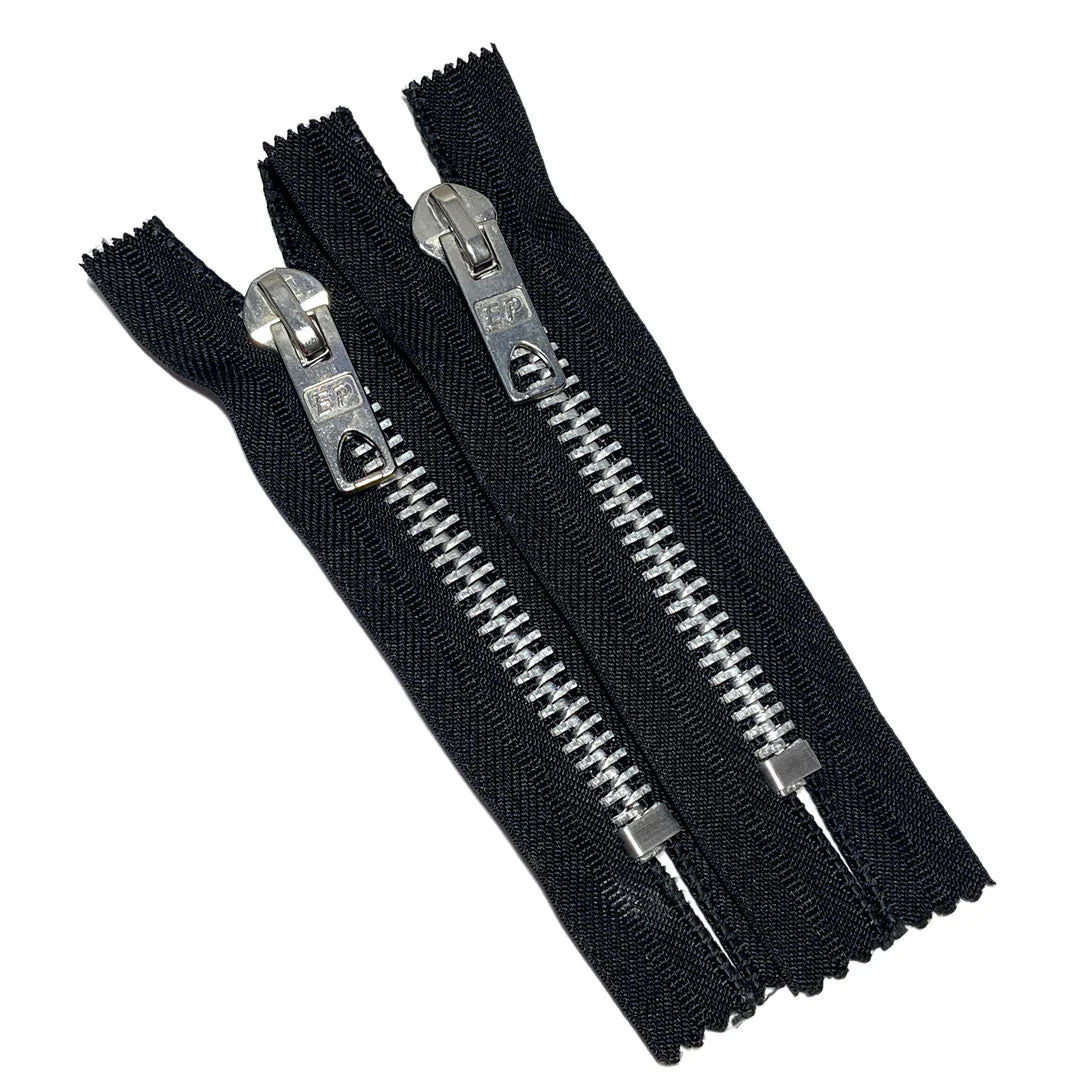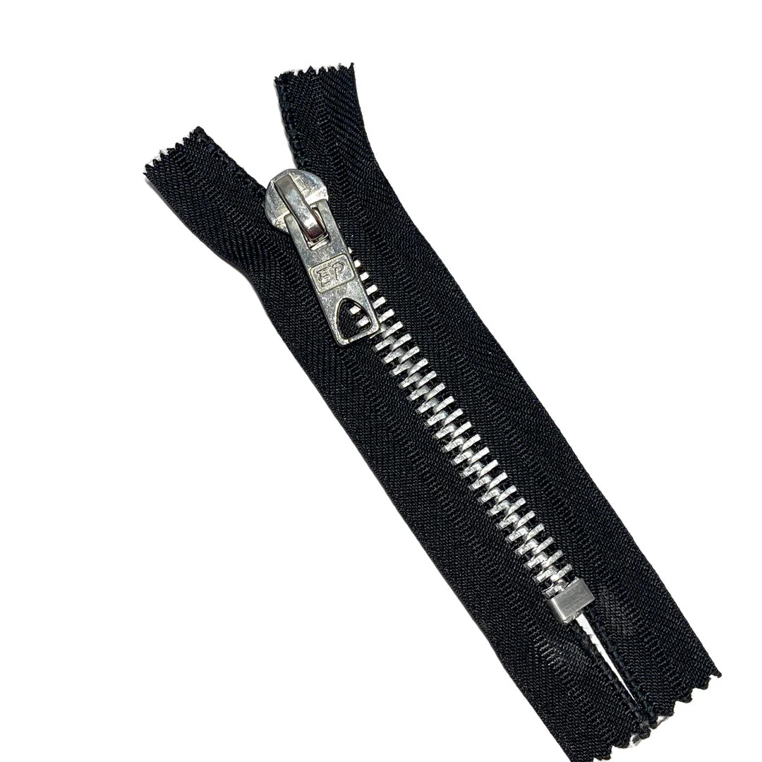 Fermeture éclair non séparable noir métal argent, 6mm, Z16