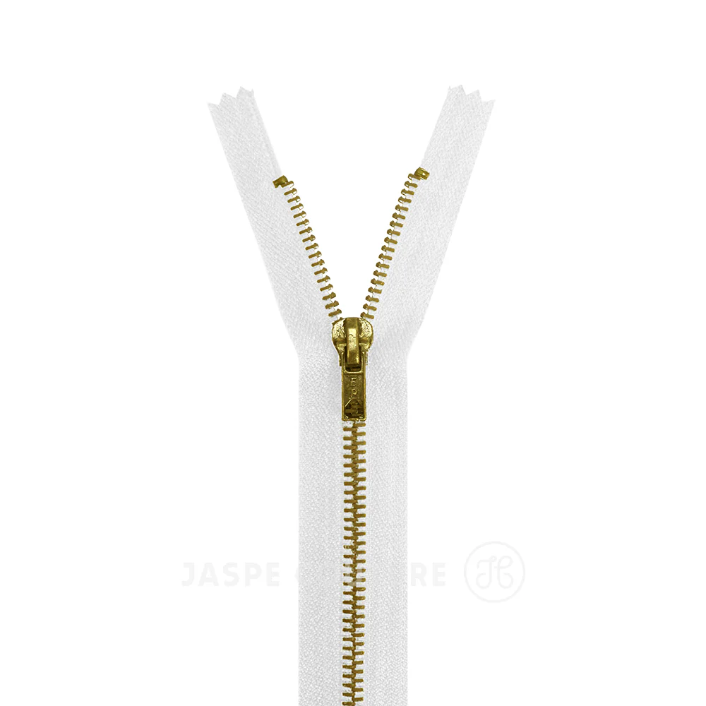 Fermeture Eclair Prym Jeans Blanc – Prym Z14 non séparable – métal doré – 6mm. Qualité supérieure. Disponible en 8, 10, 12, 15, 18 et 20 cm. Prym est le leader mondial dans la fabrication des fermetures éclair. Voir aussi d’autres coloris Z14.