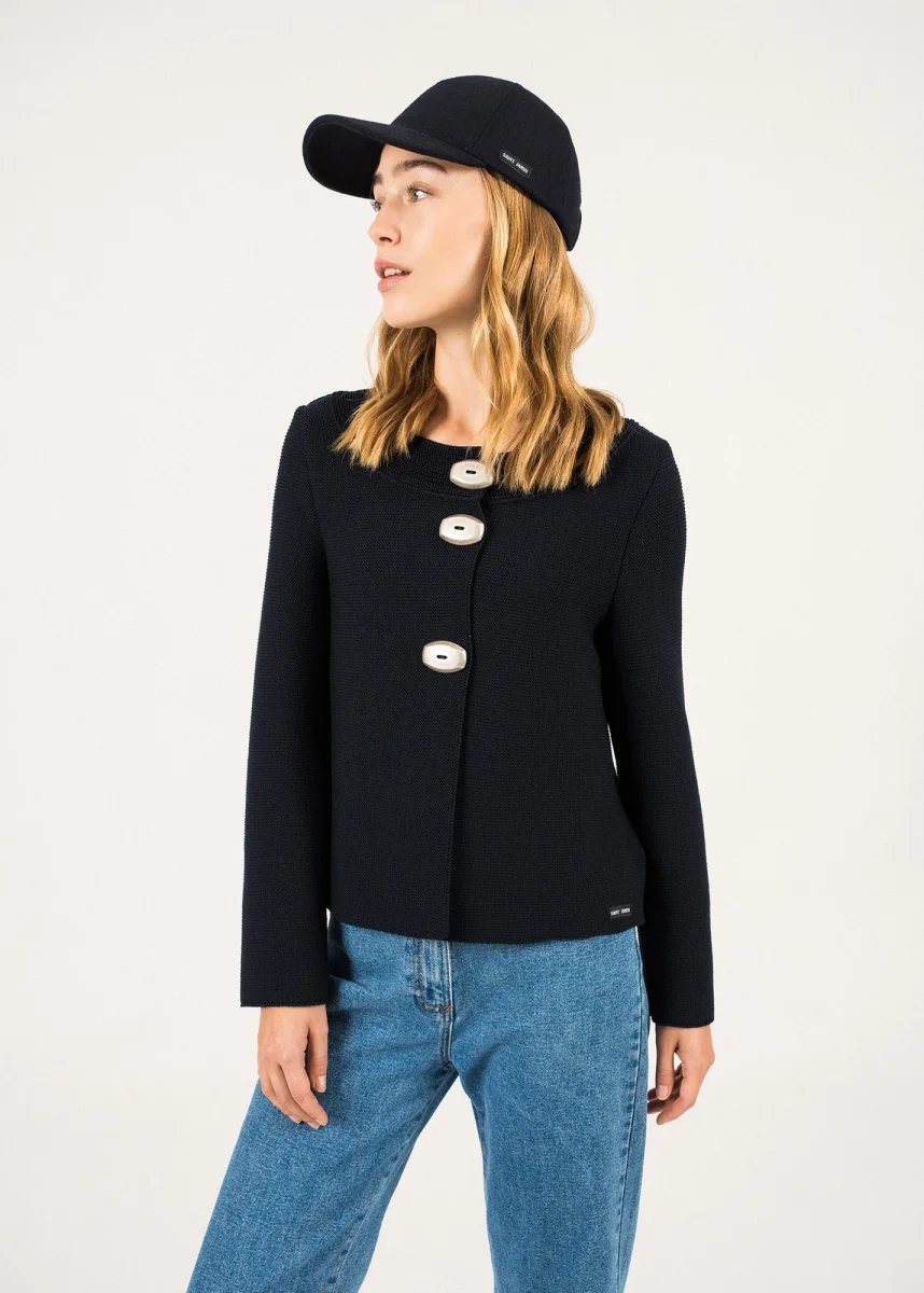 Tricotée en point mousse, la veste en laine Adrets Réédit est moelleuse et confortable. Inspirée de l’un de nos anciens modèles, la veste Adrets en a conservé le volume et le point mousse. Les boutons ont été changés, afin de gagner en légèreté et en modernité.