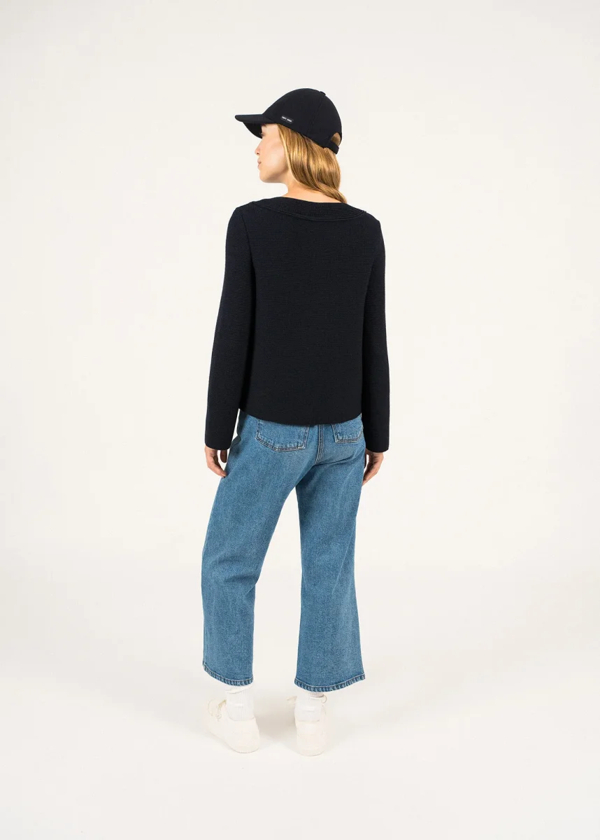 Cardigan en laine Yachting Réédit – à blason brodé poitrine (NAVY)