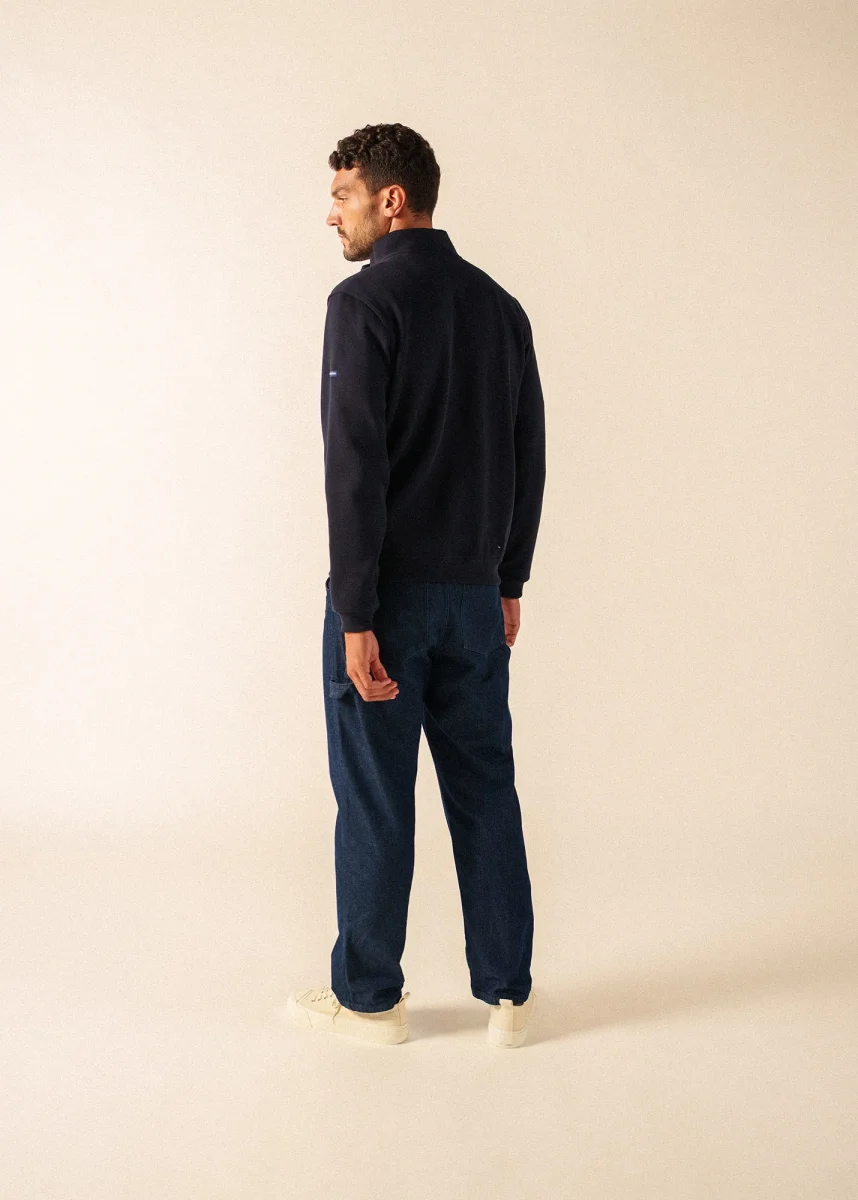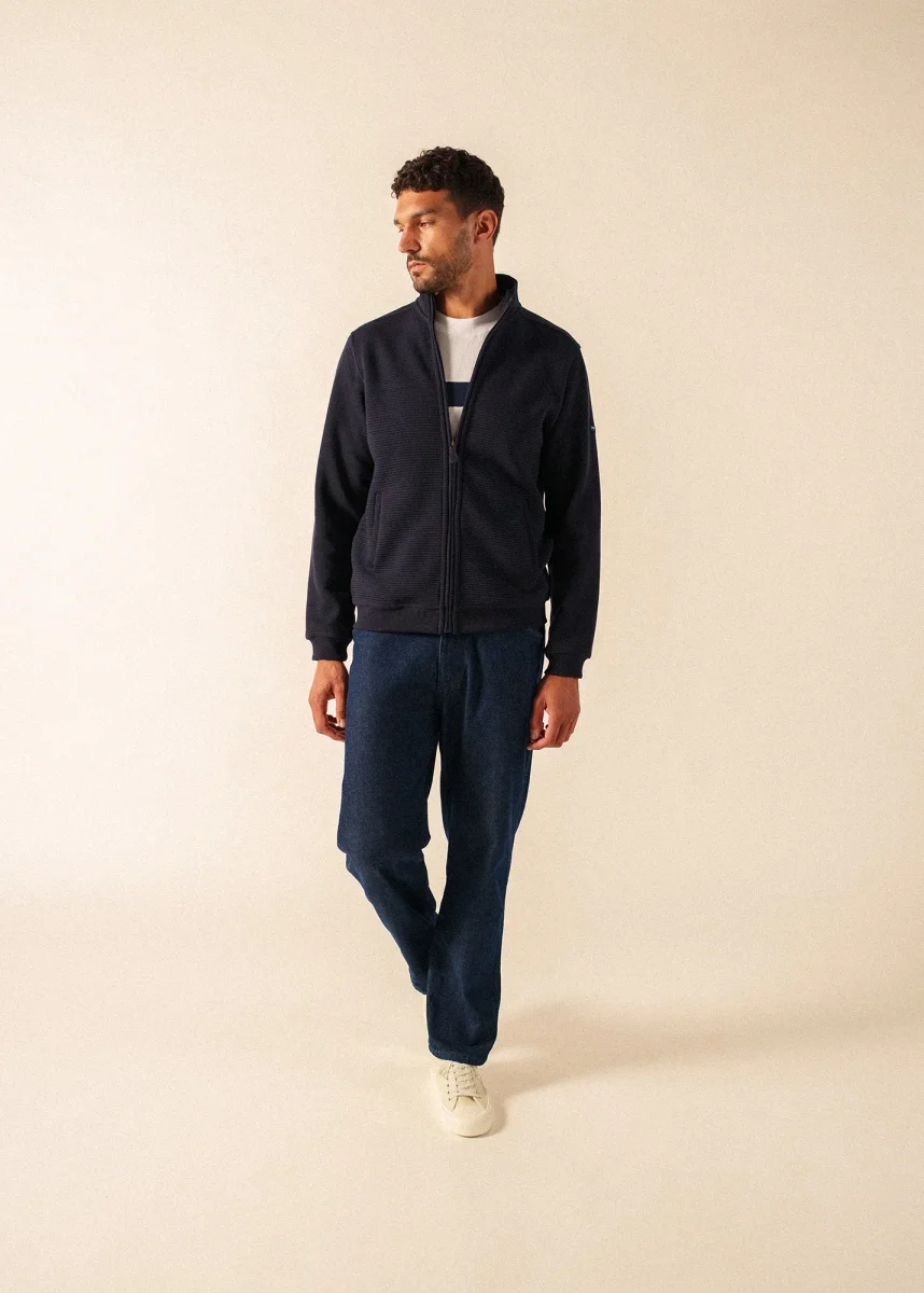 Pour les soirées de printemps qui s’étirent ou les matinées encore un peu fraîches, le gilet Matteo est cette pièce facile à enfiler pour ajouter une couche de chaleur. Tricoté en côte américaine, une maille avec juste ce qu’il faut d’épaisseur, il présente un travail de texture différent sur le devant qui lui donne du relief. Son col montant se ferme par un zip et cache à l’intérieur un détail discret : une touche de motif oxford avec des surpiqûres jaunes, un clin d’œil que vous seul pouvez voir. Des poches passepoilées sont placées sur le devant, tandis que sa coupe droite et ses finitions en bord-côtes aux poignets et à la base lui assurent une bonne tenue.