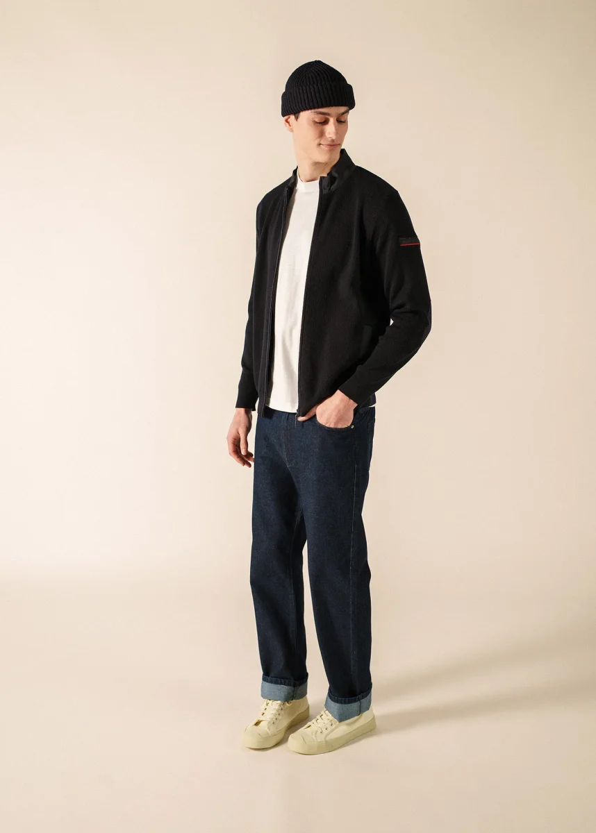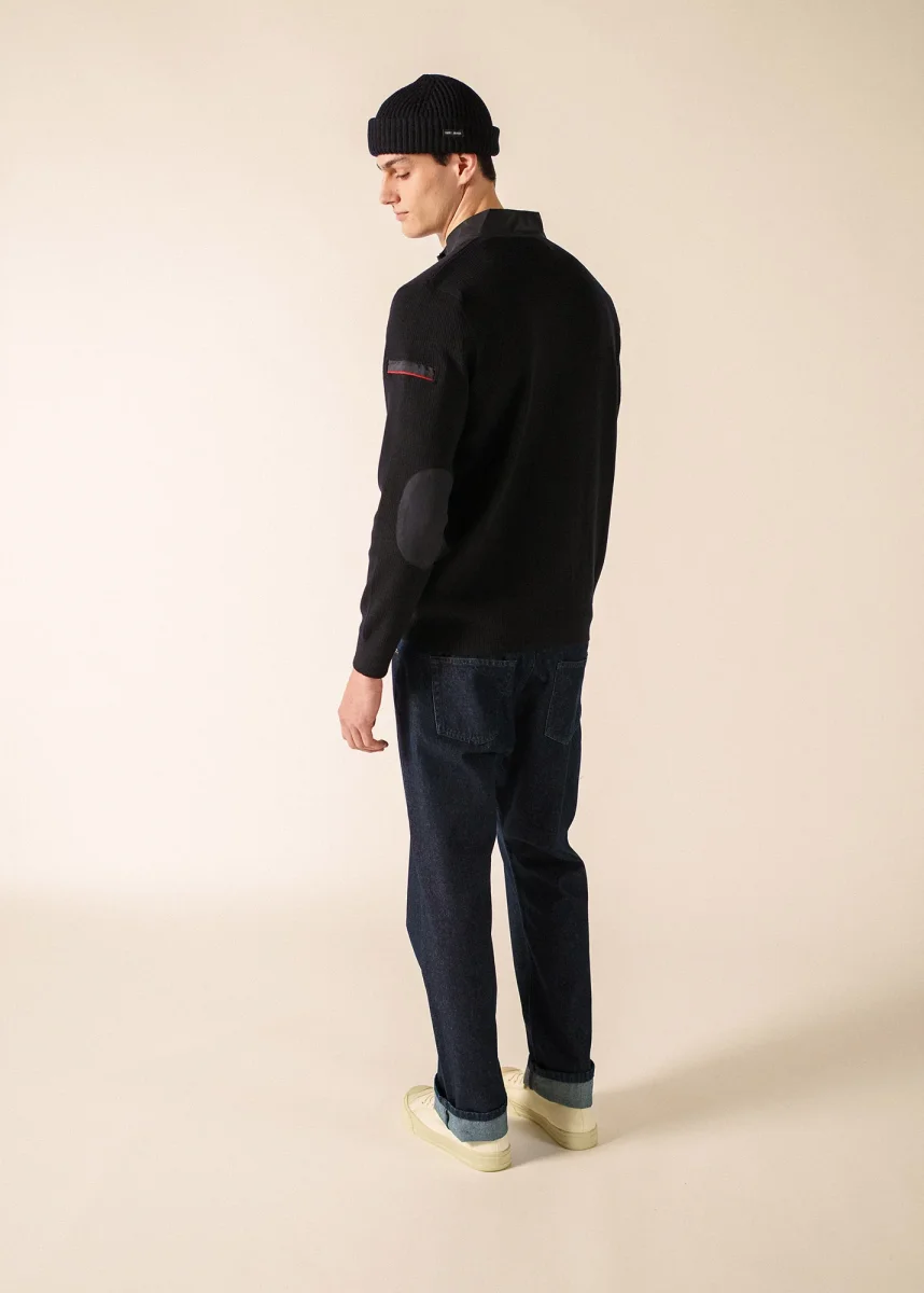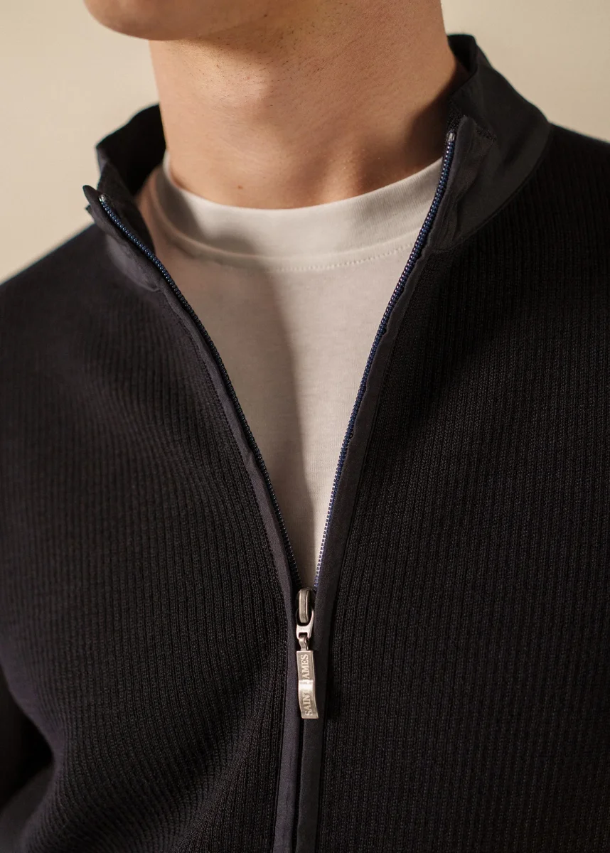 Reconnaissable à sa côte fantaisie, la touche de rouge qui signale la poche sur le bras gauche ou encore ses empiècements en toile qui ponctuent le modèle, au col, aux poches, sur l’ouverture zippée et sur les coudières. Le modèle navigateur s’affirme comme un iconique et concentre l’essence de l’esprit nautique de la tradition SAINT JAMES.