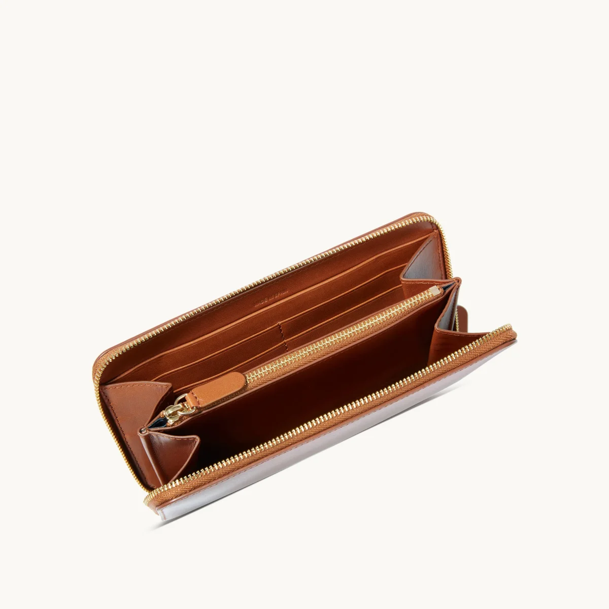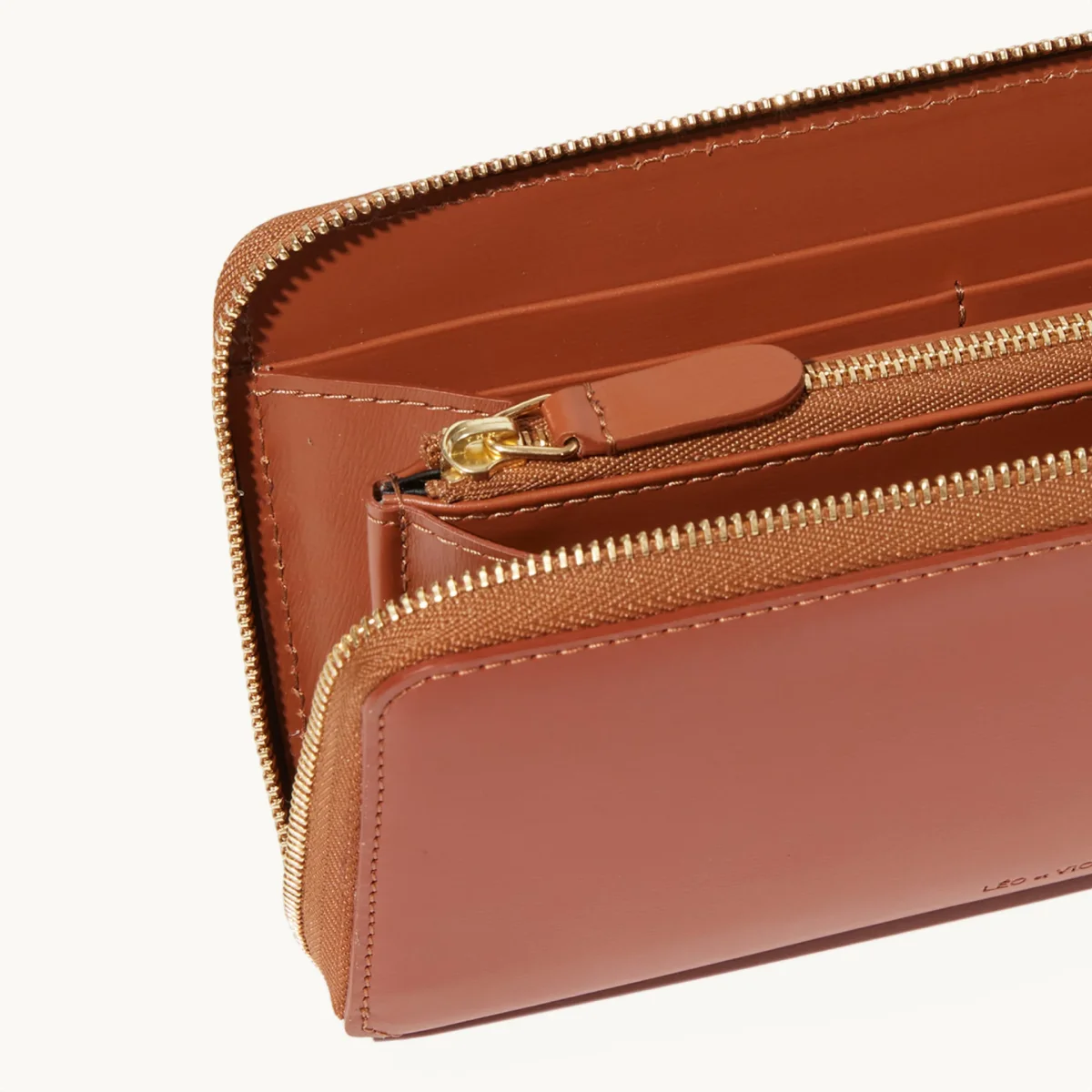 issu de tannerie italienne certifiée LWG. Poche zippée à l’intérieur pour la monnaie. 2 poches plates pour chèques ou billets. Doublure en cuir. Logo embossé à chaud.