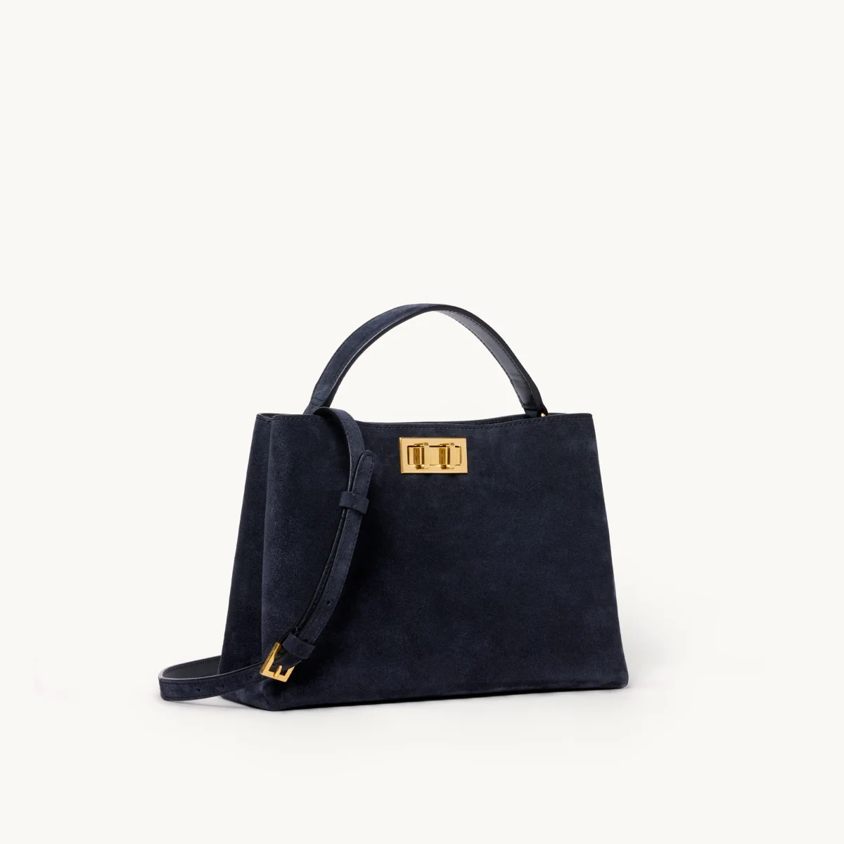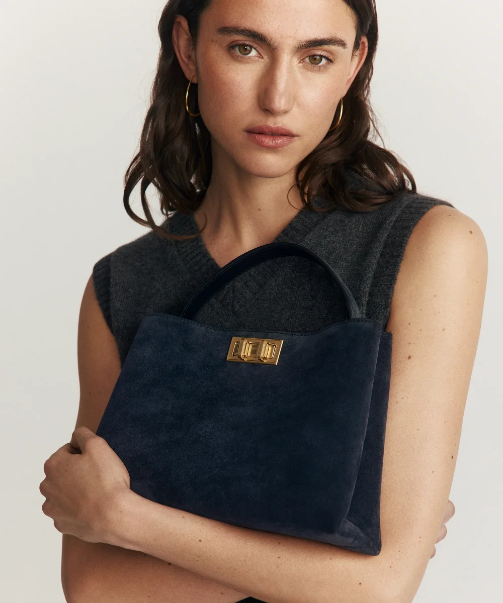 Sac shopper minimaliste semi-structuré en cuir suédé, issu d’une tannerie italienne certifiée LWG Gold. Anse épaisse en cuir pour un porté à la main et bandoulière ajustable en cuir pour un porté croisé. Intérieur entièrement doublé en suédine beige, avec poche centrale aimantée. Fermoir sur-mesure DuoLock™️ en acier inoxydable, finition PVD dorée. Fabriqué à la main en Italie.