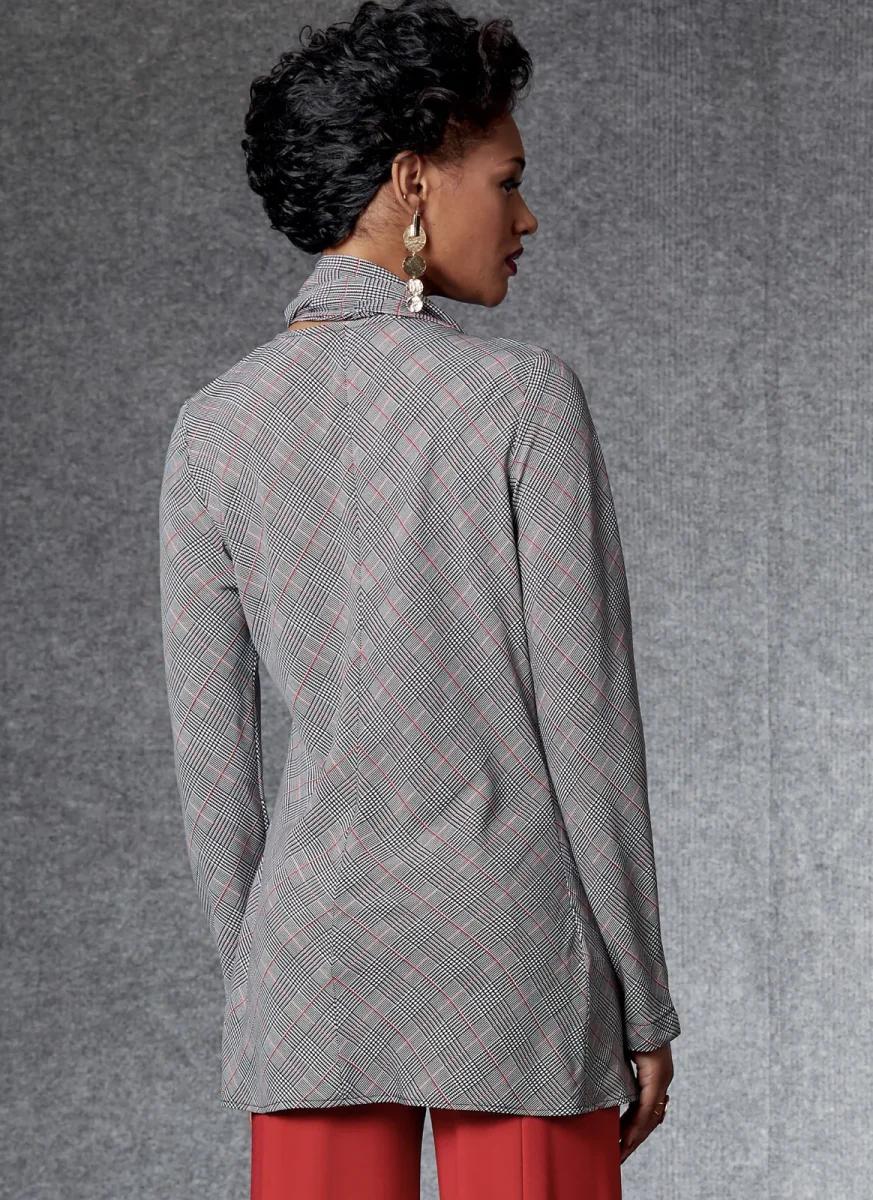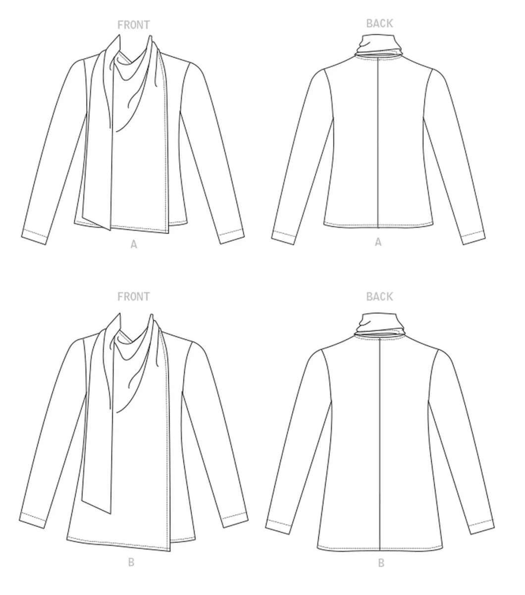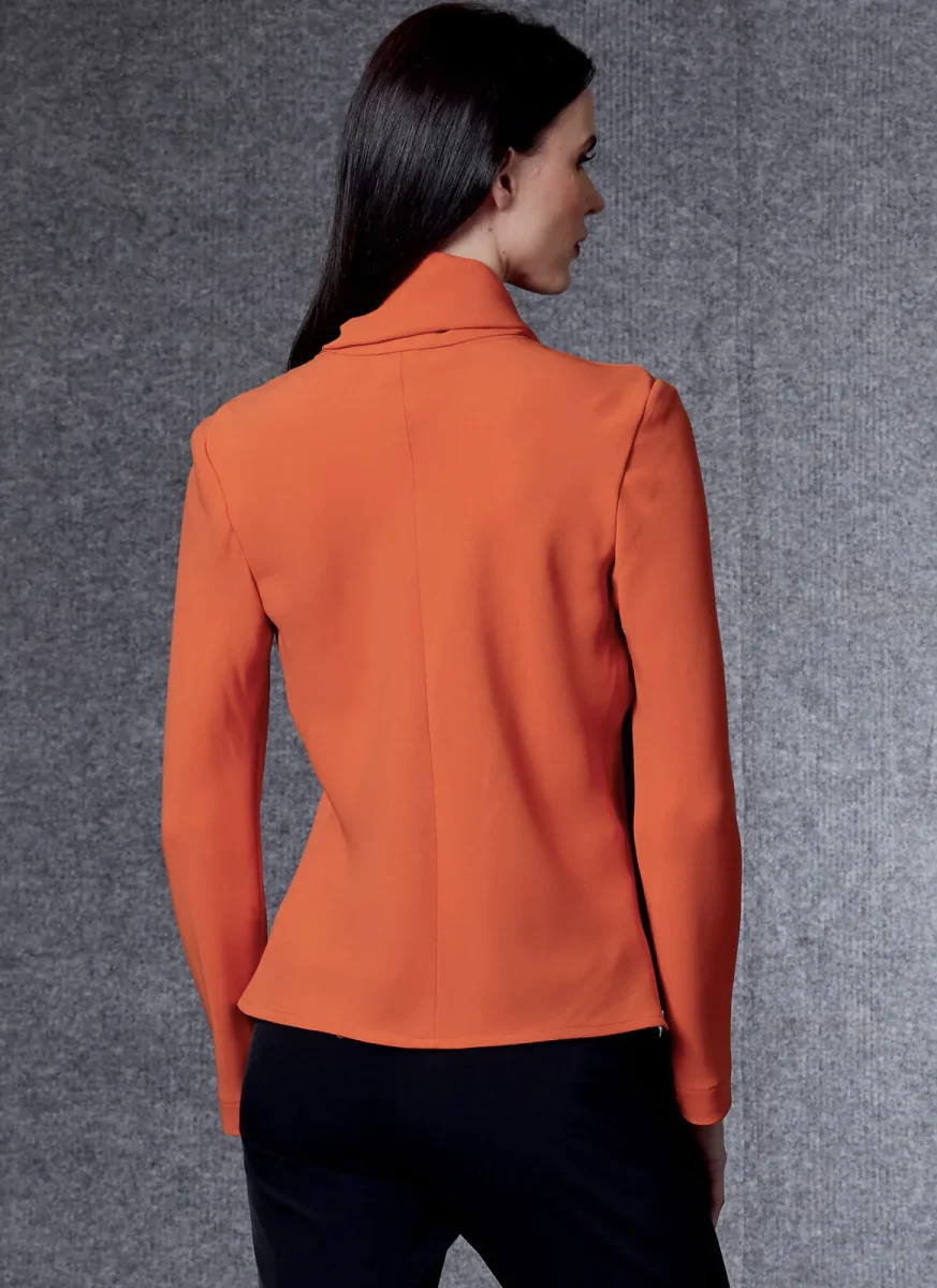 Patron couture chemisier, femme Vogue 1727. Très joli chemisier ajusté, coupé dans le biais à devant asymétrique formant un foulard, ourlets piqués, bouton-pression intérieur caché à l’encolure, épaules prolongées.