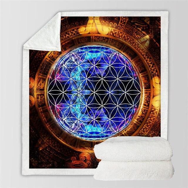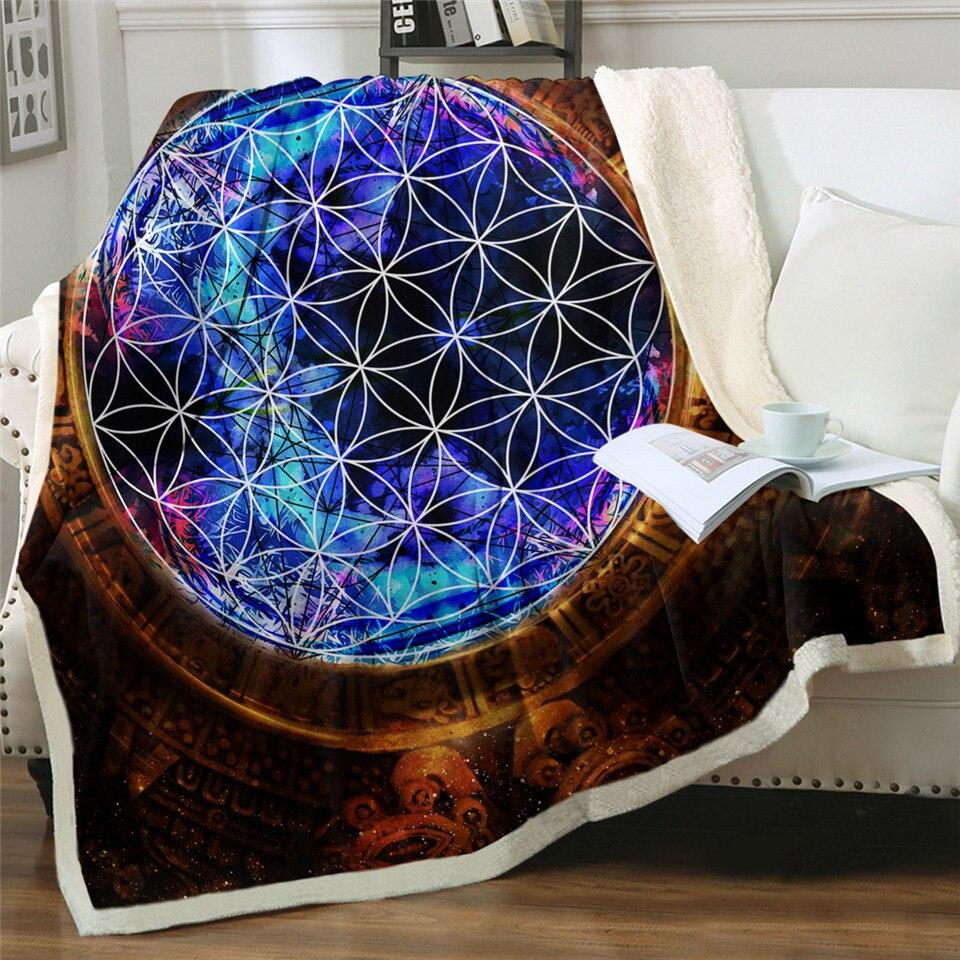 Ce plaid haut en couleur a été imprimé de superbes cercles précis formant le symbole de la fleur de vie. Sa matière composée de polyester et de flanelle en fibres synthétique lui permet de stocker la chaleur sans laisser passer le froid.