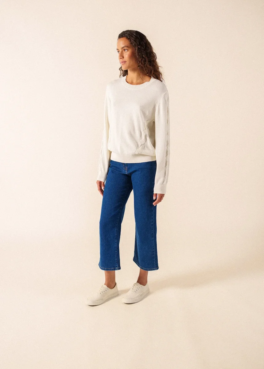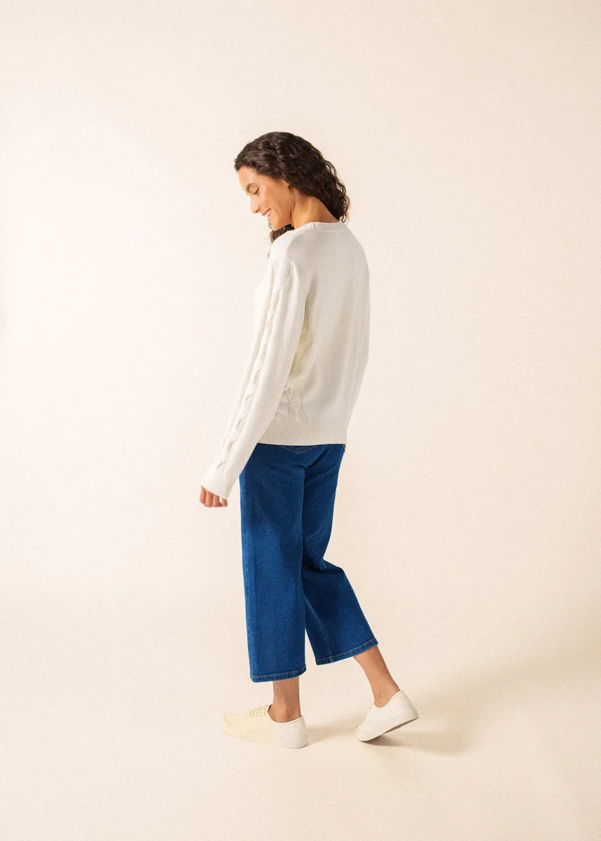 Pour les journées de printemps encore un peu fraîches ou les soirées qui se prolongent, le pull Albufeira apporte juste ce qu’il faut de chaleur. Sa particularité vient de sa maille structurée, avec des motifs en relief qui dessinent le devant, le dos et les bras, lui donnant un caractère bien à lui. L’encolure est ronde et la coupe est droite, ce qui le rend facile à intégrer dans vos tenues. Les bords côtes aux poignets et au bas du vêtement assurent un bon maintien de la pièce. La composition en coton et laine (90%-10%) a été pensée pour sa douceur et la chaleur qu’elle procure.