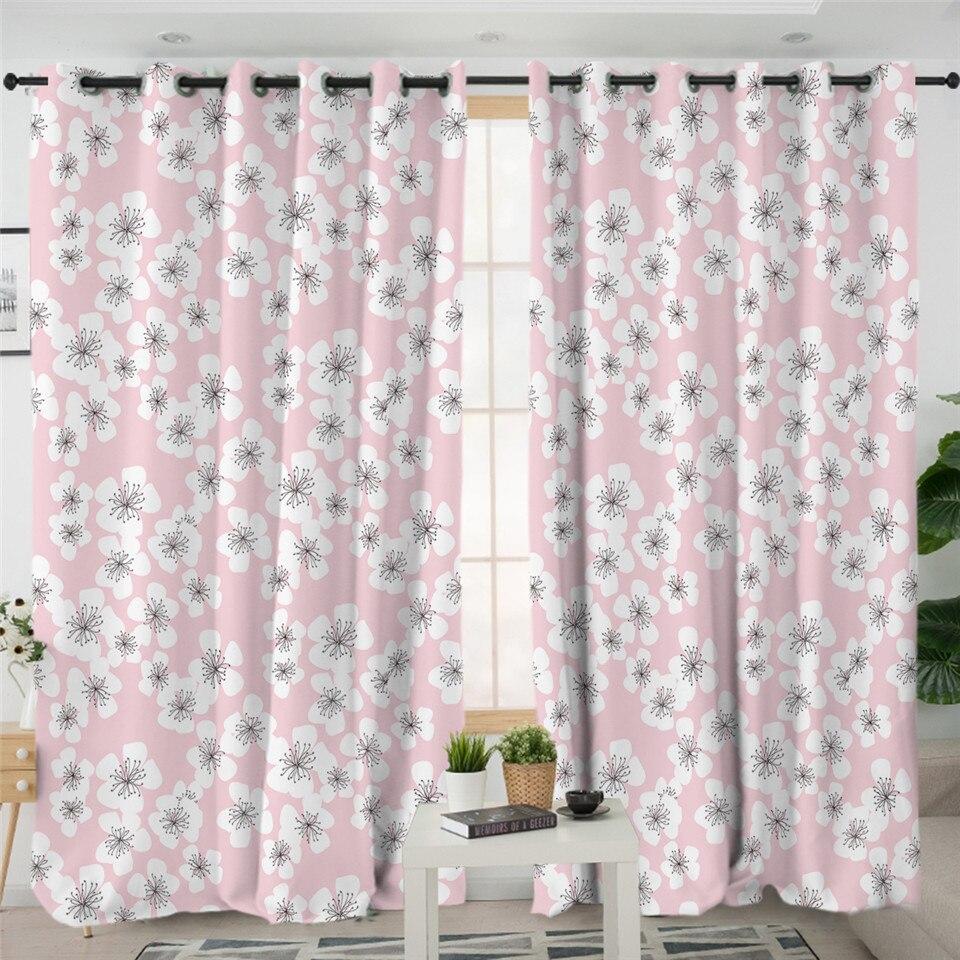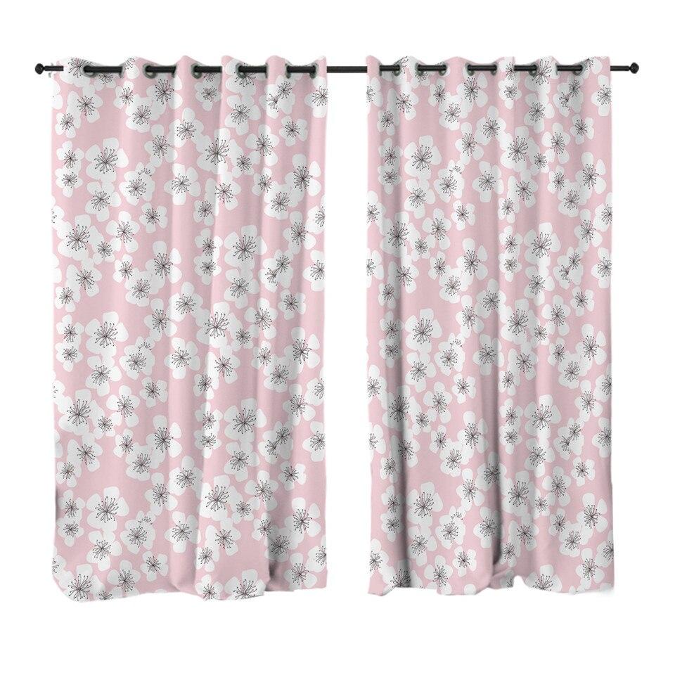 Rideau rose imprimé de fleurs