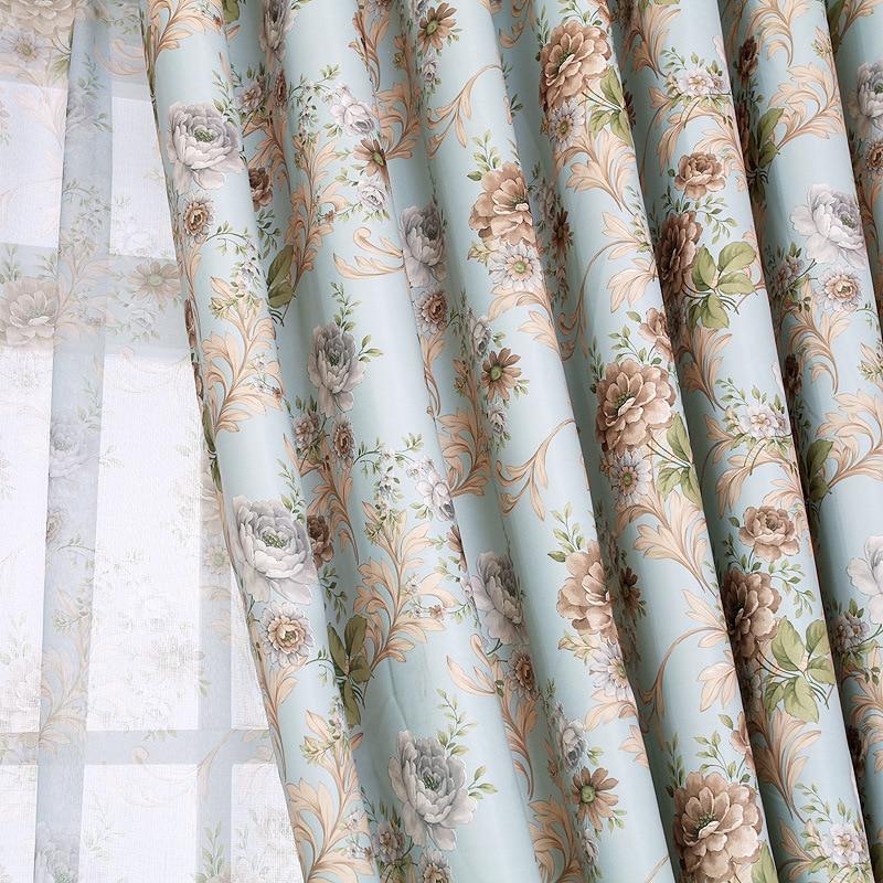 Double rideaux fleuris bleus