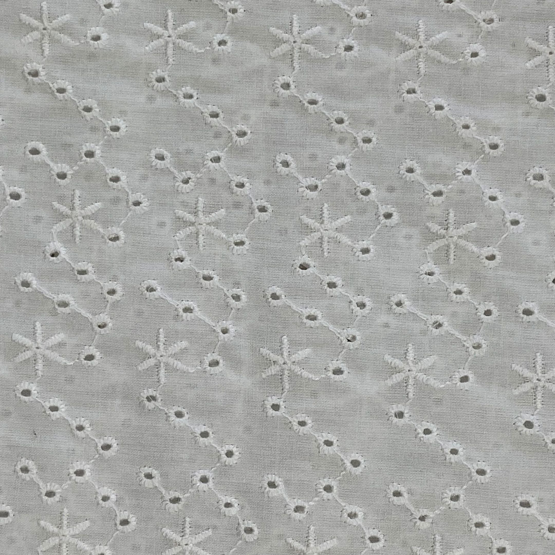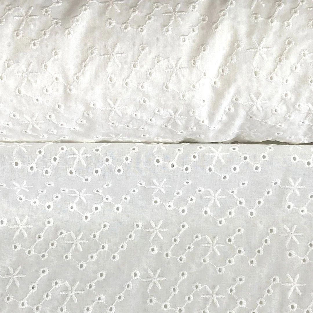 Tissu coton broderie anglaise blanc naturel, création française