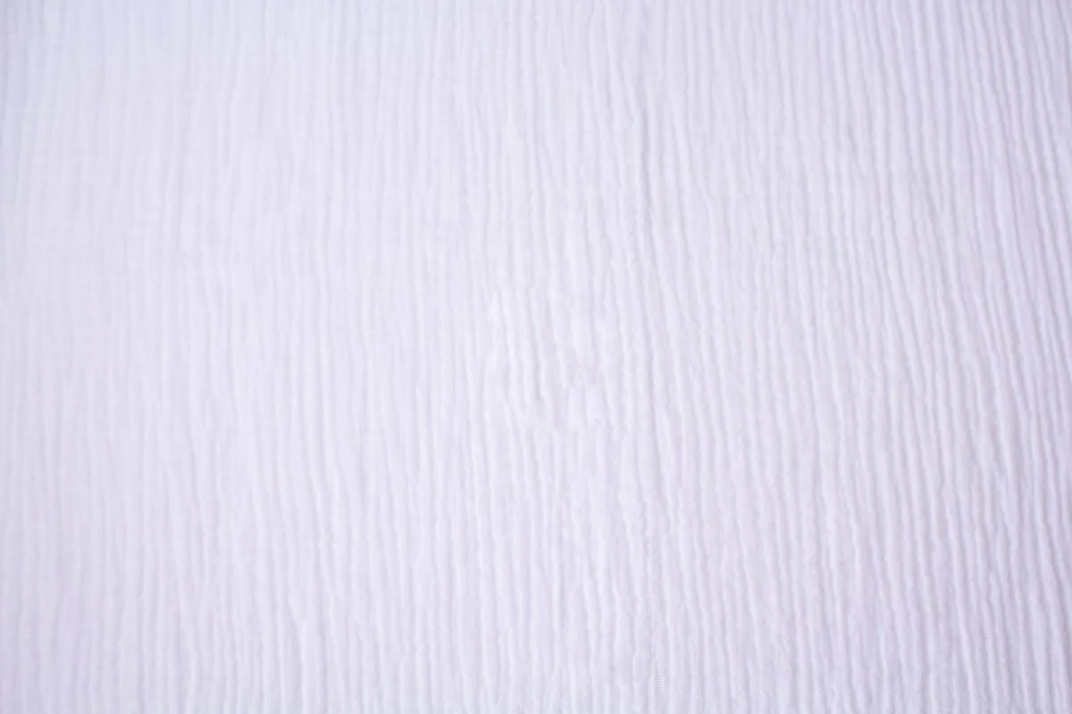 Tissu coton double gaze gaufrée – Largeur 130cm, coloris blanc optique, 130gr par mètre carré. Certifié Oékotex Standard. Peut être utilisé dans les secteurs suivants de décoration :