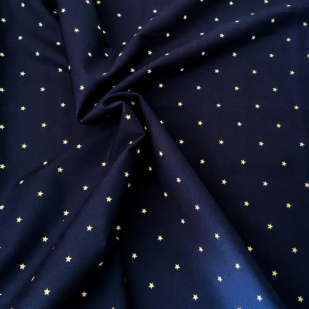 Tissu coton imprimé étoile, bleu marin foncé, 50cm
