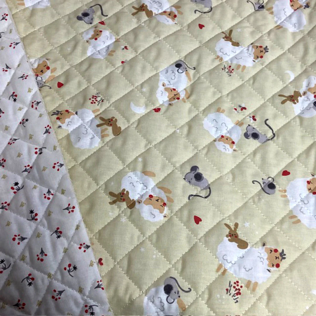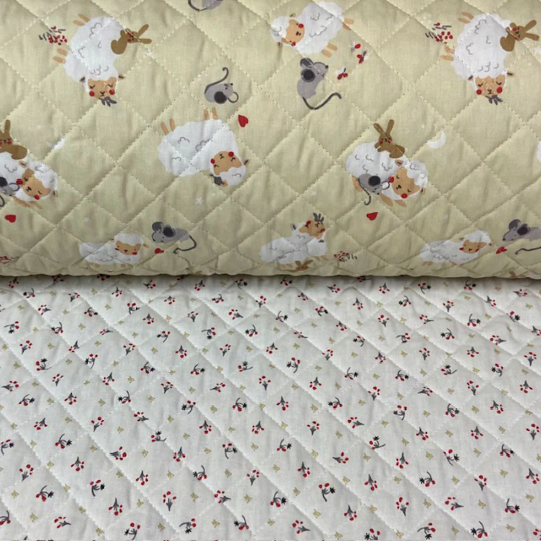 Tissu coton matelassé réversible pour enfants. Offrez confort et douceur à vos créations grâce à ce tissu en coton matelassé, parfait pour des projets à la fois pratiques et esthétiques. Ce tissu arbore d’adorables motifs d’animaux qui plairont aux petits comme aux grands : de charmants animaux comme des moutons, des souris et bien d’autres encore.