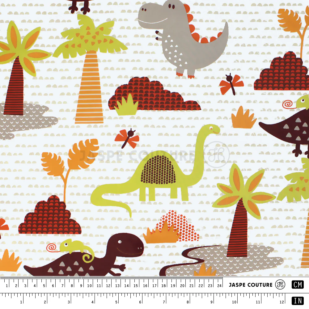 Tissu coton motifs dinosaures Tyrex, vendu par 0,50cm – Fabrication française