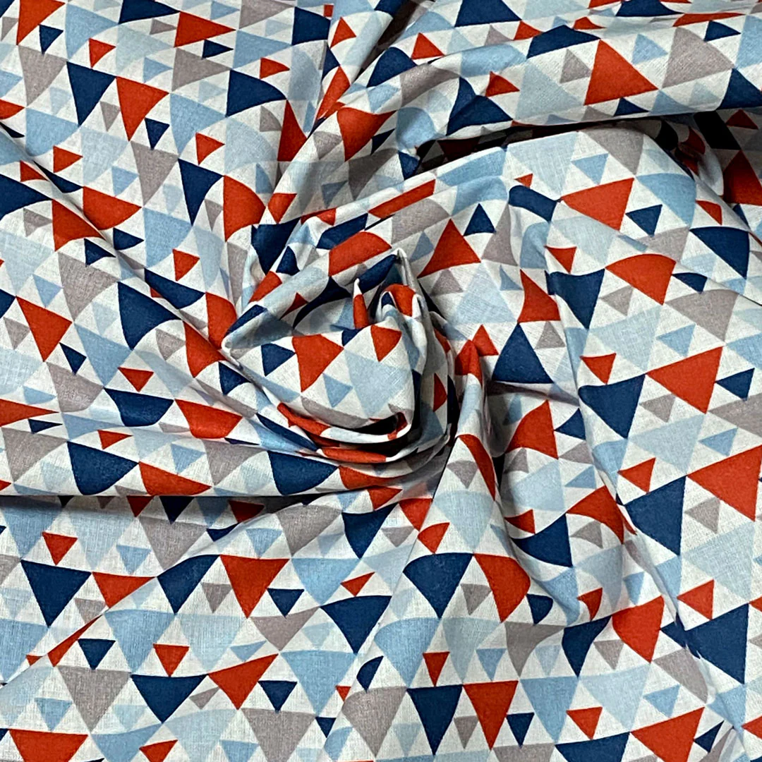 Tissu coton Tigaya bleu rouge style vintage à motifs géométriques- Largeur 150cm, 115gr par mètre carré. Certifié Oékotex Standard 100/1 +2 et conforme à la règlementation REACH. Tissu stabilisé à 4%. Motifs coordonnés gais & tendances. Idéal pour vos coussins, parures de lit et housses de couette. Peut être utilisé dans les secteurs suivants de décoration :
