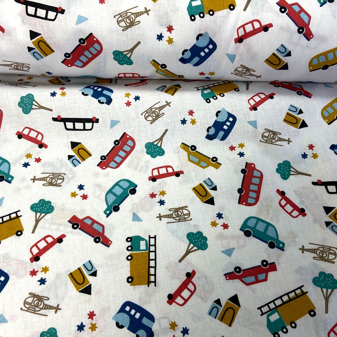 Tissu coton veicoli motifs voitures, tissu Domotex, 50cm