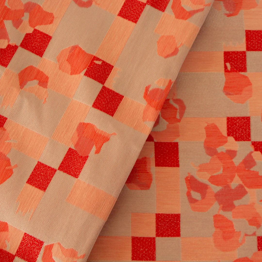 Tissu Jacquard made in France, rose et blanc
