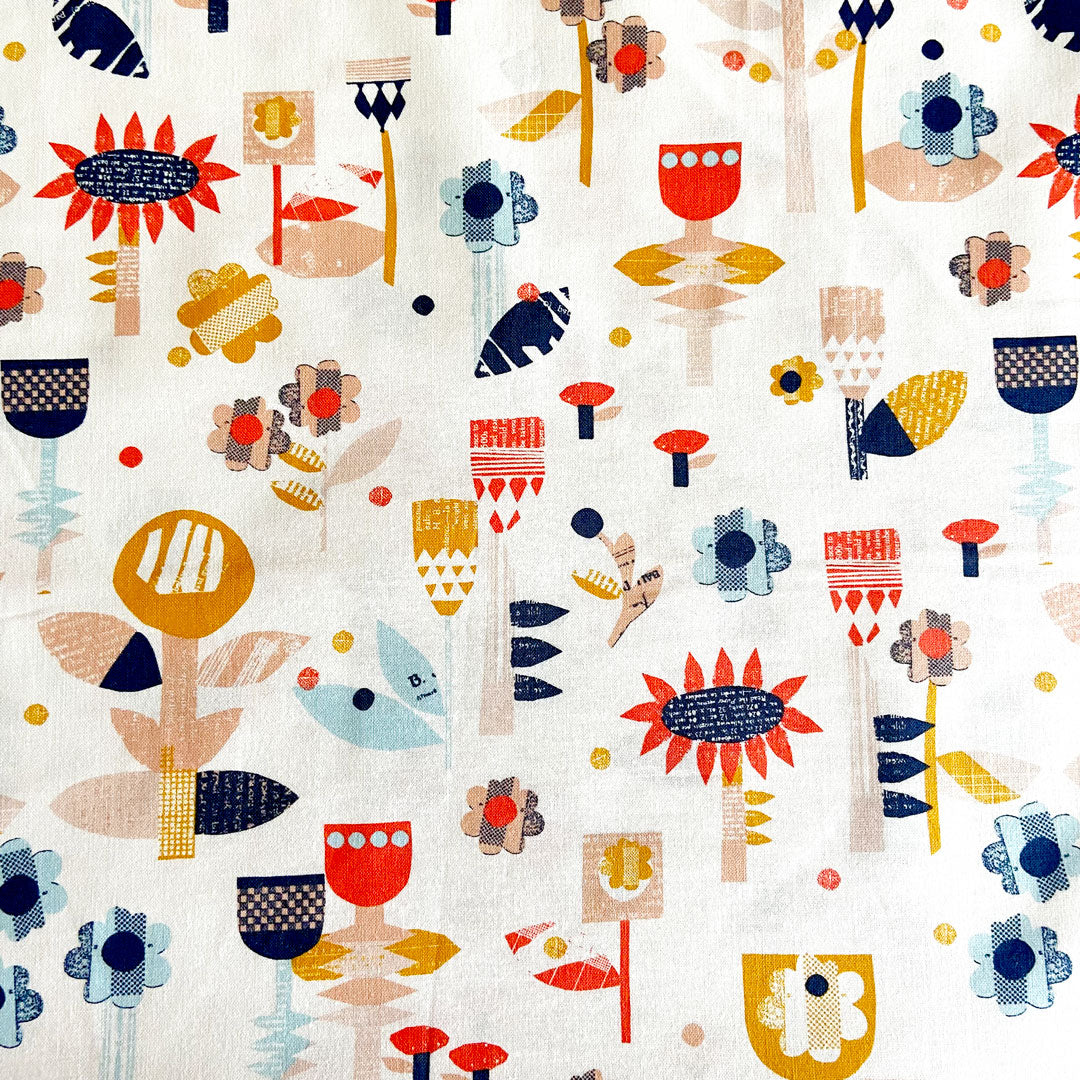 Tissu patchwork, Tissu pour vêtements et décoration – Vendu à la coupe par 10cm. Pour commander 1 mètre, choisissez 10 et ainsi de suite. Vous recevrez votre tissu d’un seul tenant. Ce tissu a des motifs de fleurs géométriques, Paper Meadow. Idéal pour vos coussins, robes d’enfants et autres accessoires de loisirs créatifs. Les tissus Dashwood viennent de Londres. Ce sont des tissus contemporains et originaux.
