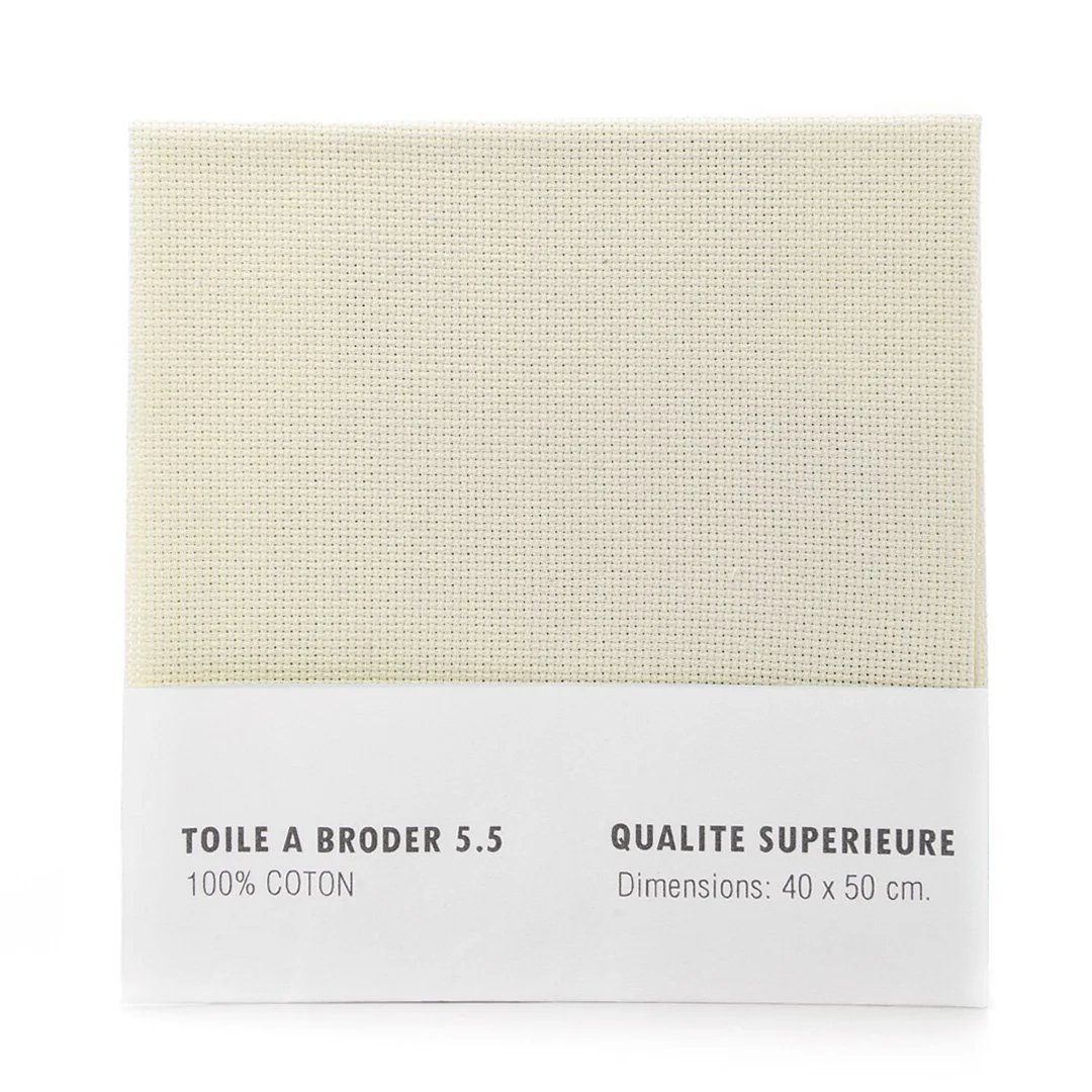 Toile Aïda 40x45cm écru, 5,5, toile de coton pour point de croix