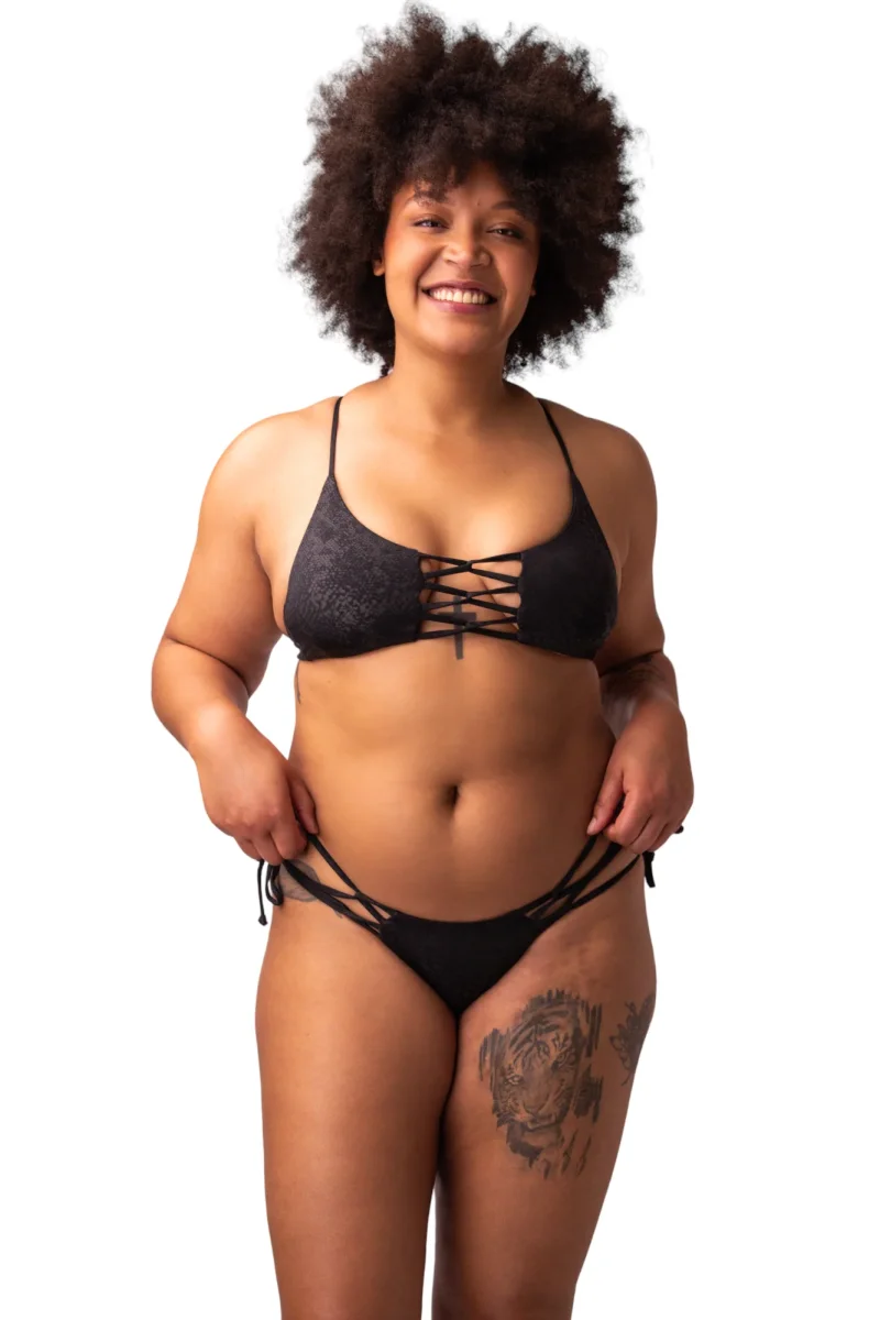 Ce bas de maillot Tropicalis, notre incontournable, correspond à l’échancrure minimale chez Belles Des Pins. Vous ne pouvez que craquer pour ce magnifique bas de maillot de bain !