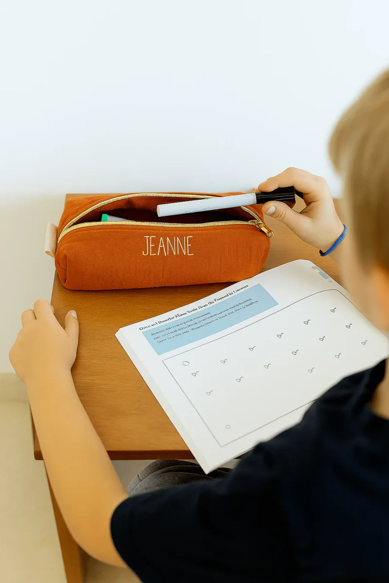 Douce, pratique et personnalisée, notre trousse d’écolier en gaze de coton accompagnera les petits (et les grands) dans toutes leurs aventures créatives ou scolaires. Rembourrée pour une meilleure tenue et entièrement doublée, elle est aussi jolie que fonctionnelle. Le prénom est délicatement floqué en doré ou argenté, pour une trousse unique à glisser dans le cartable, le sac ou sur le bureau.