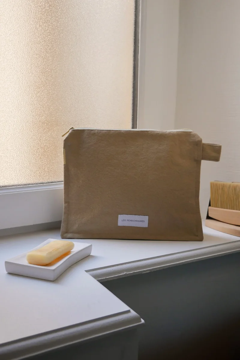 Trousse de toilette beige sable en épaisse toile de coton bio