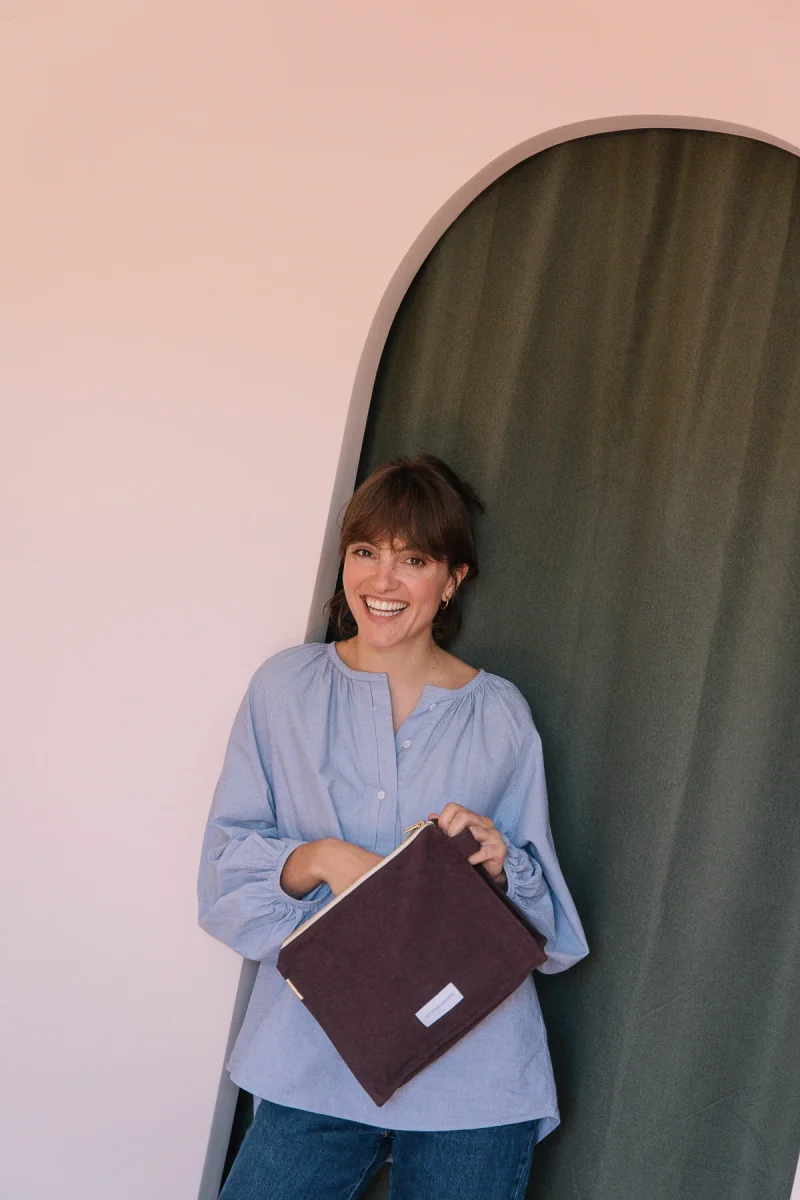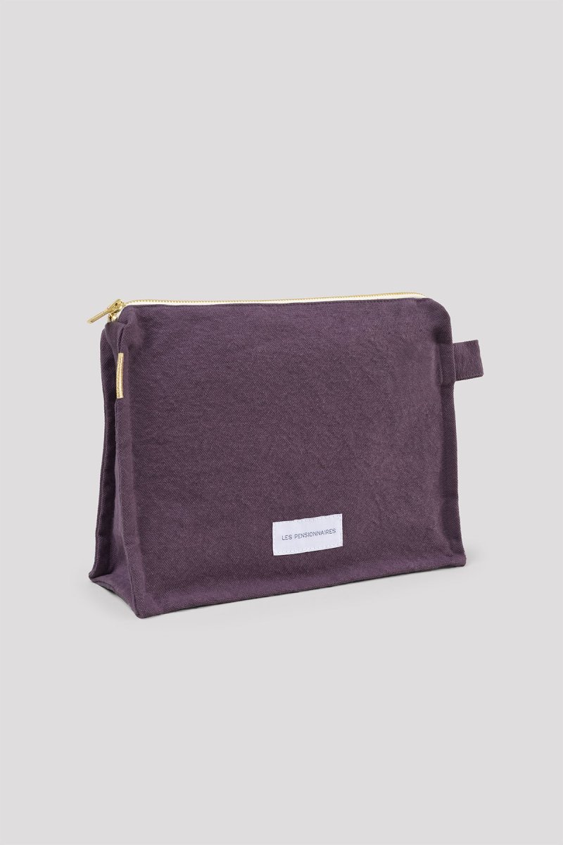 Trousse de toilette violet aubergine en épaisse toile de coton bio