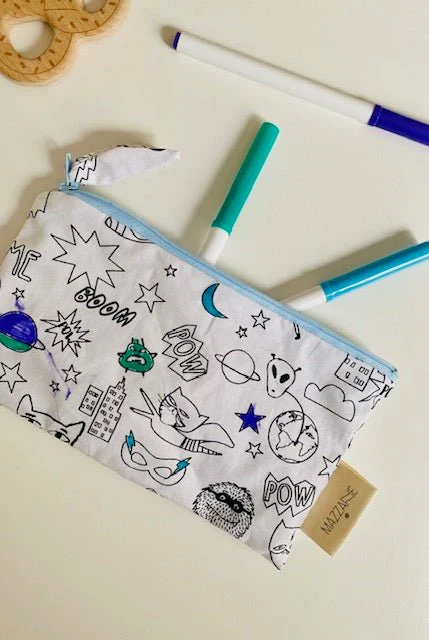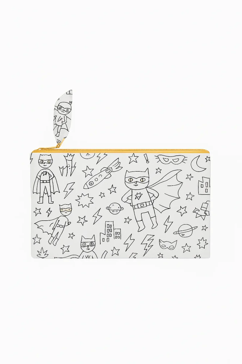 Trousse enfant en tissu à colorier lavable et réutilisable motifs superhéros
